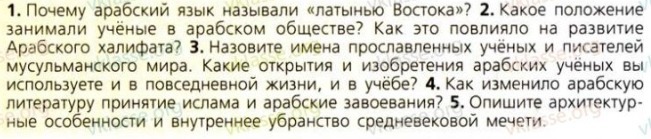 Ответ. Арабских учёных очень уважали влиятельные люди халифата. Учёные не имели власти сами по себе, но занимали видное место при дворах тех, кто эту власть имел и потому влияли на их политику. Поэтому администрация халифата достигла больших успехов в управлении, а наука расцвела. Всё это помогало подданным халифа во время расцвета, но не спасло государство от кризиса и распада.