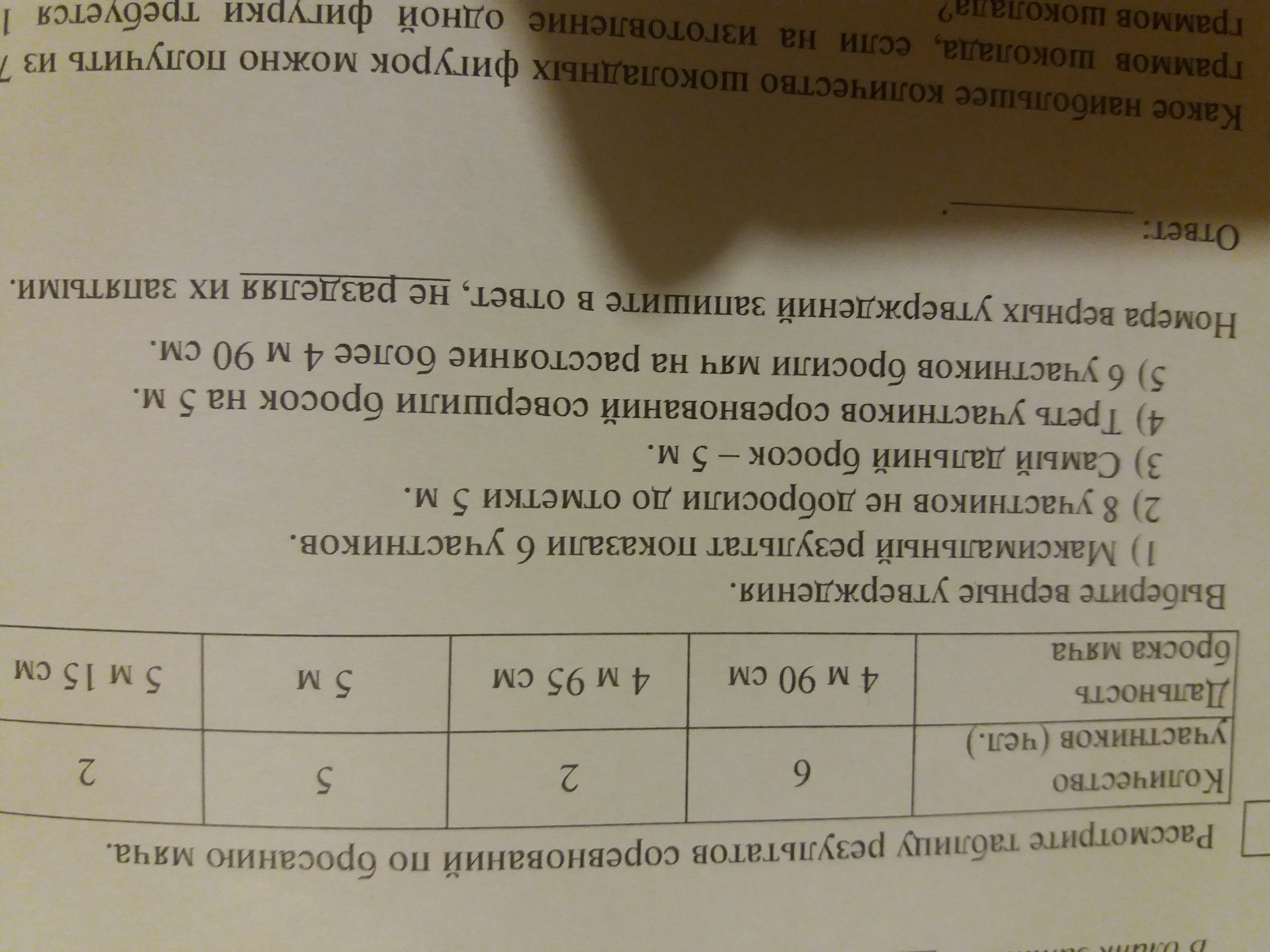 Нужна помощьрассмотрите таблицу результатов соревнований по бросанию мяча и нужно выбрать верные утверждения
