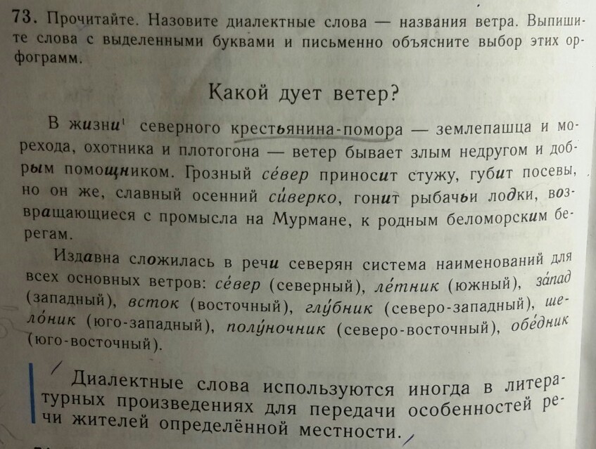 В речи северян сложилась система основных ветров:(перечисление ветров)