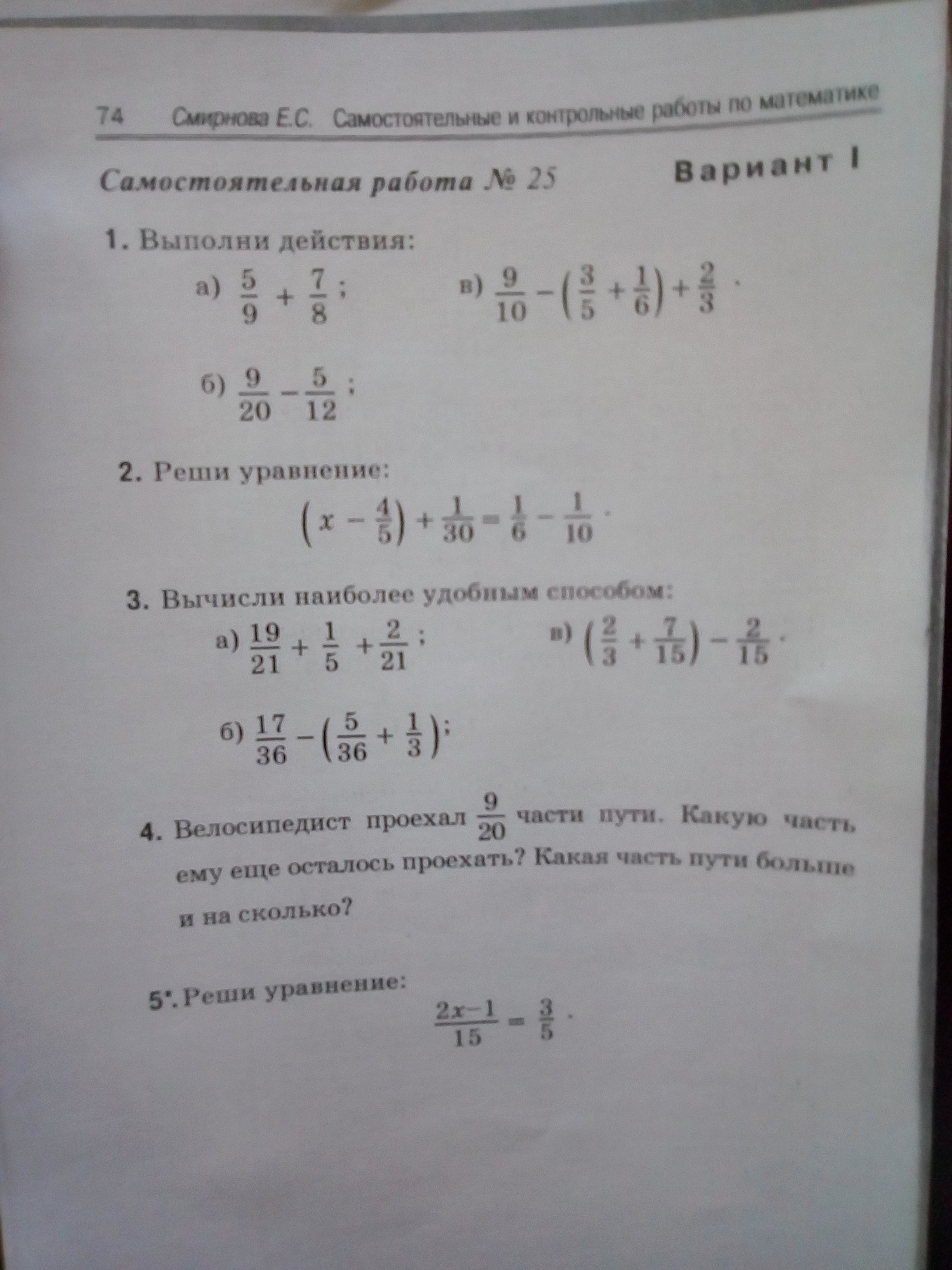 4. Велосипедист проехал 9/20 частей всего пути => весь путь - 20/20 частей.