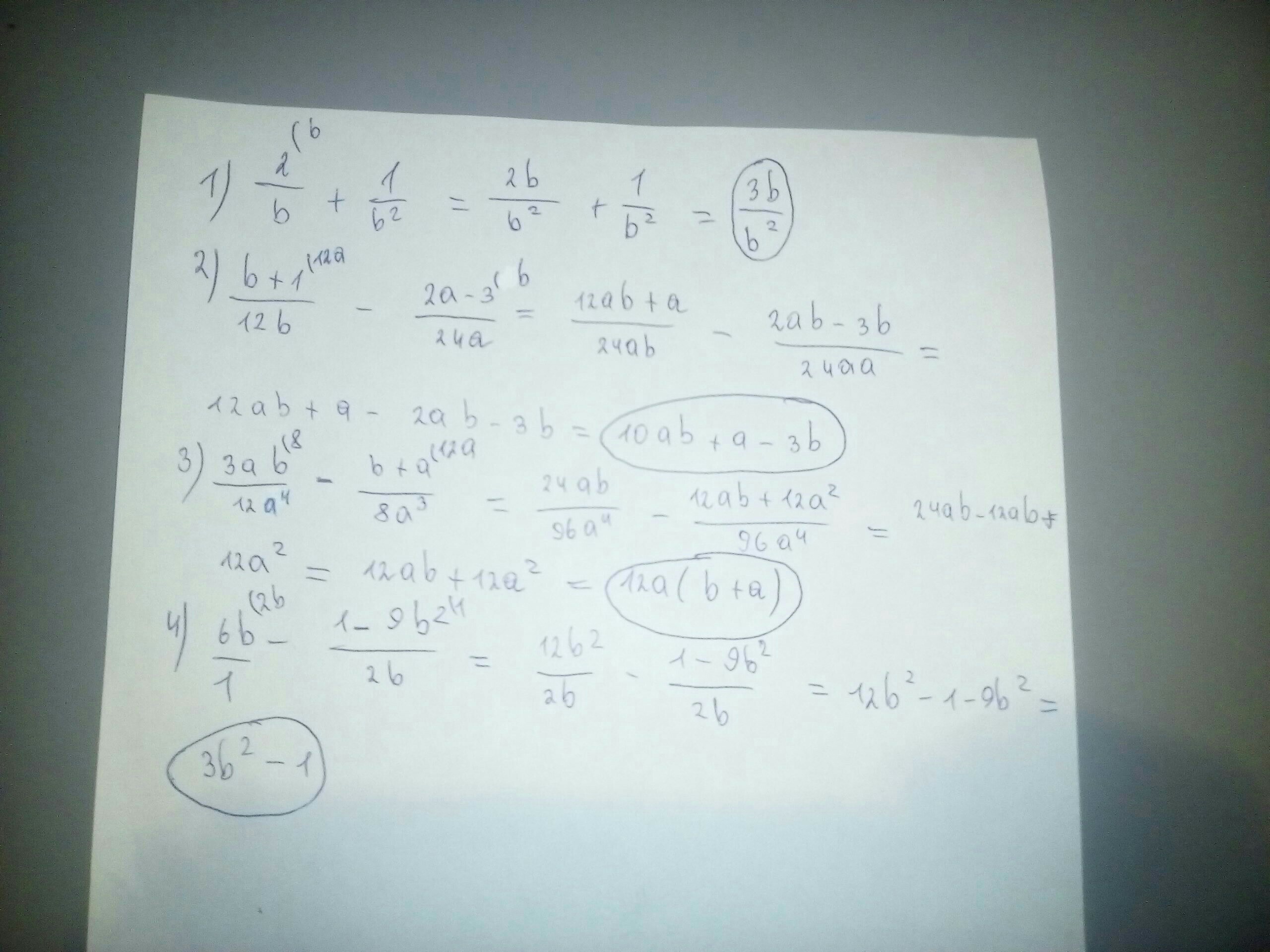 2ab-1/4b⁴ - 3a-b/6b³ = ?