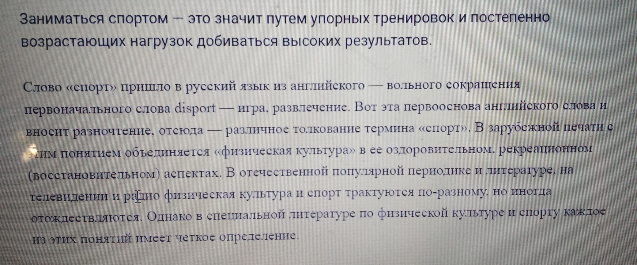 Заниматься спортом - это значит путем упорных тренировок и постепенно возрастающих нагрузок добиваться высоких результатов.