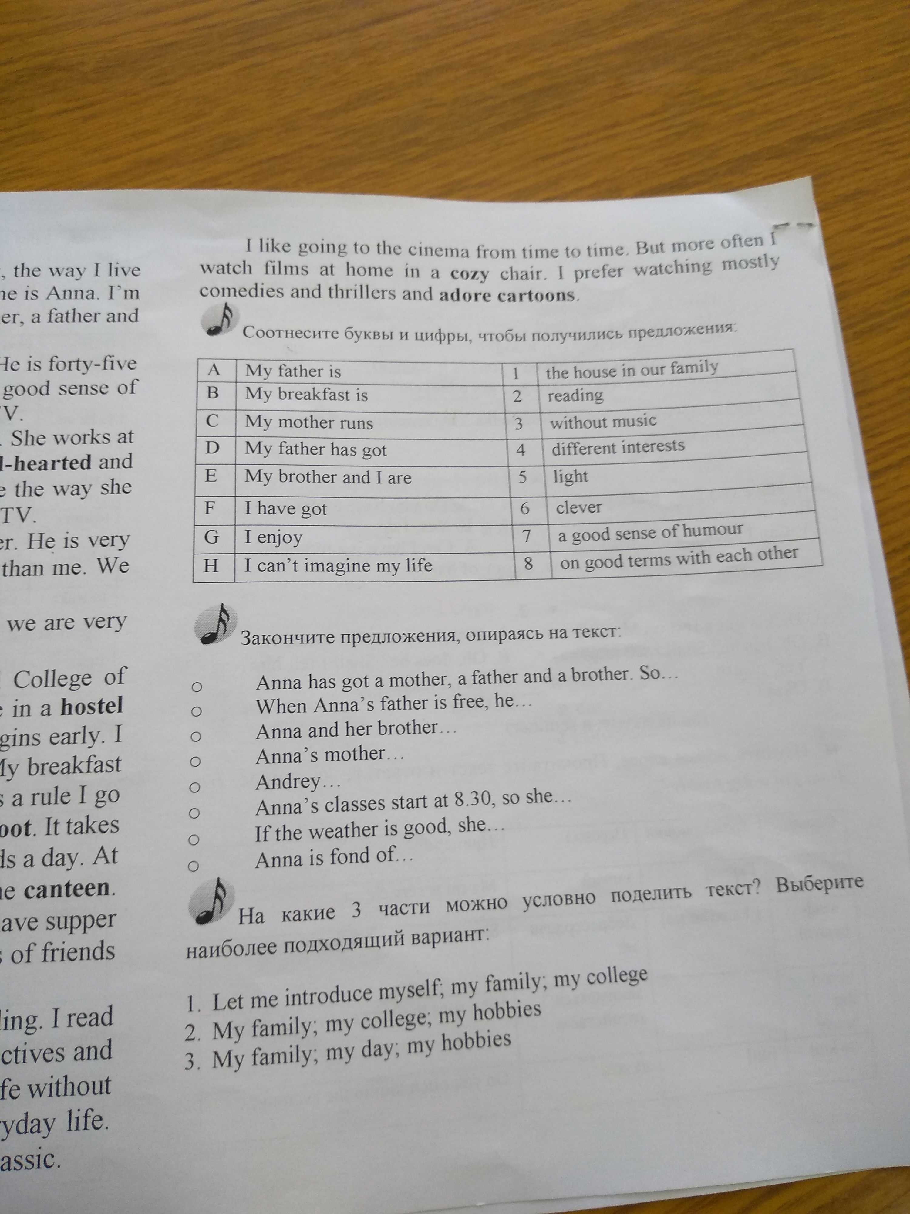 разреши мне рассказать пару слов о своей семье, о том как я живу, и о том что люблю делать больше всего. Хорошо, меня зовут Анна, мне 17 лет. Моя семья не большая. У меня есть мама, папа, и брат. Что ж, нас четверо.