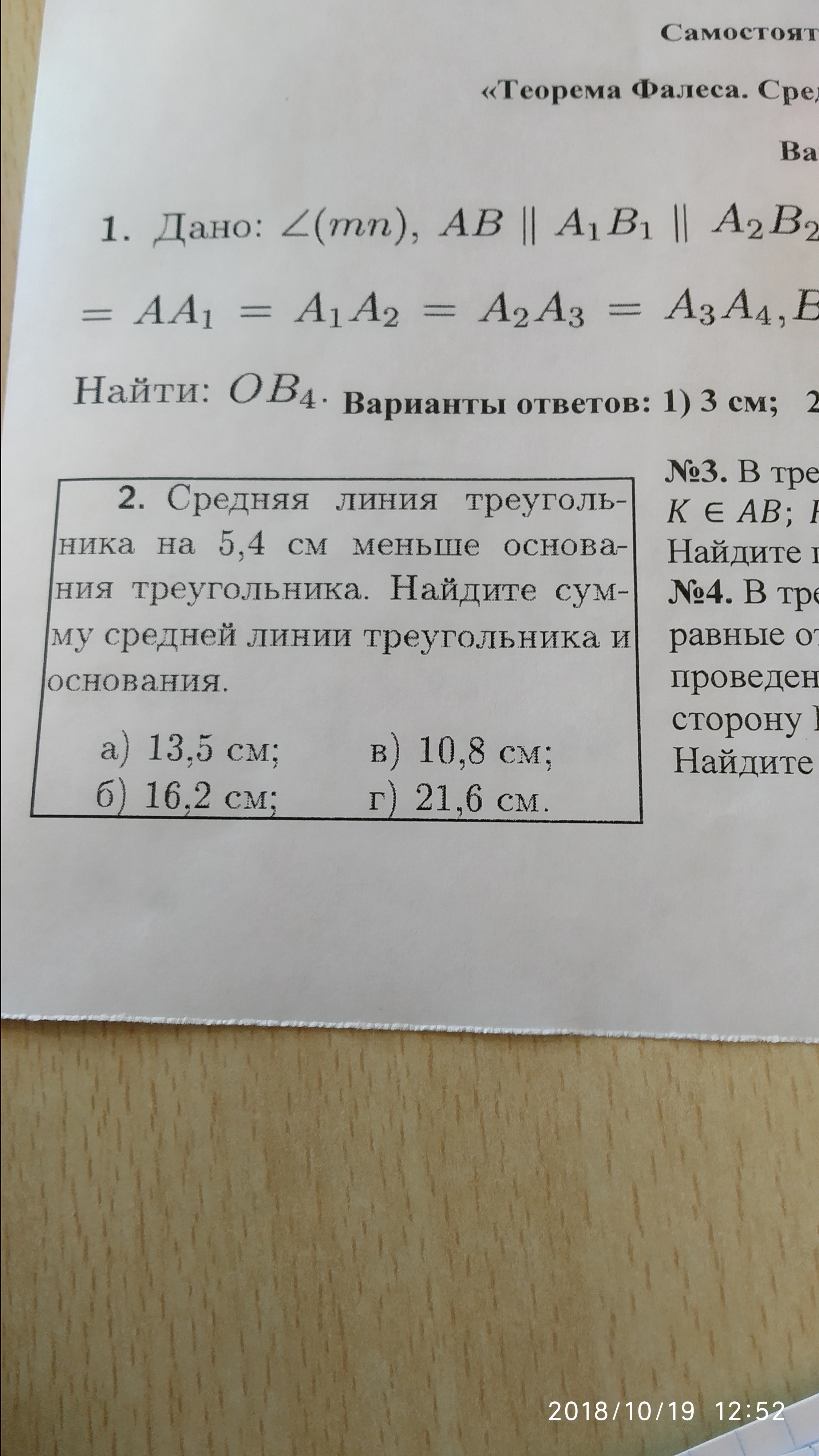 Средняя линия=5,4см