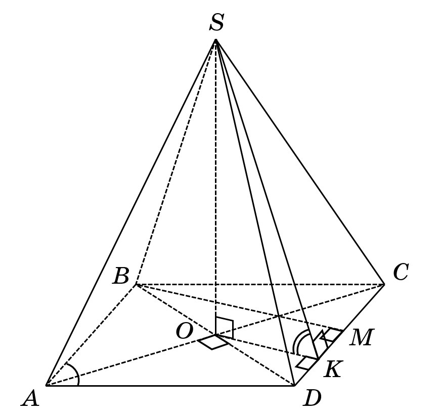 Пусть — четырёхугольная пирамида, в основании которой ромб