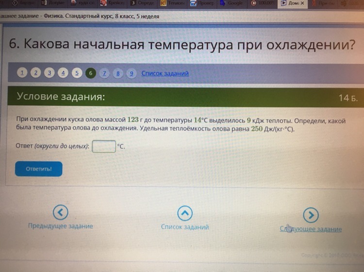 t1 = 9000/250*0,123 + 14 = 306,7 *C