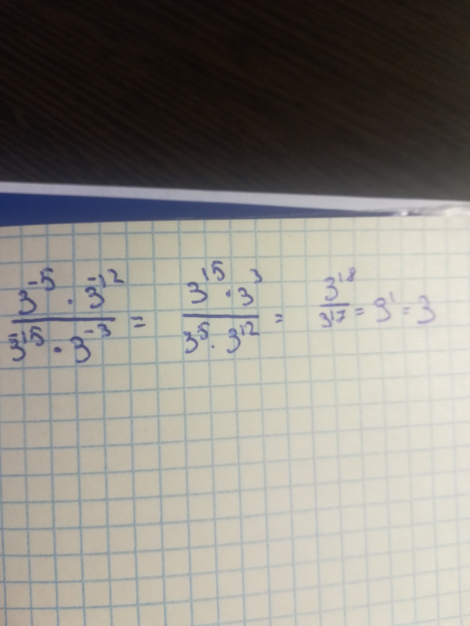 3^15*3^3 дробная черта 3^5*3^12 = 3^1 = 3