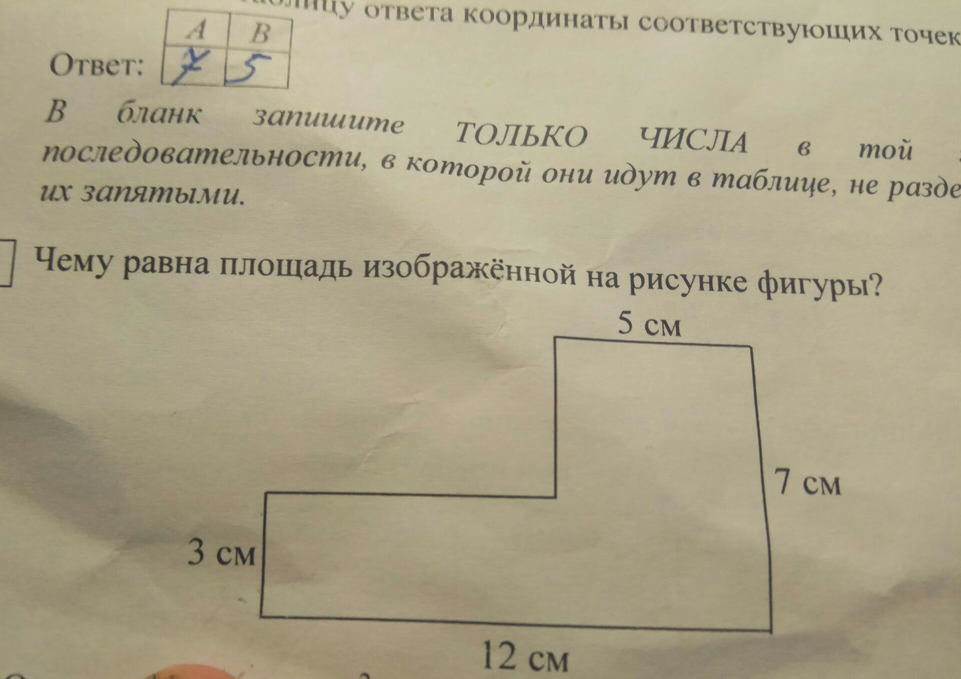 Другой прямоугольник : высота 3 см ; длина 12-5=7см ;