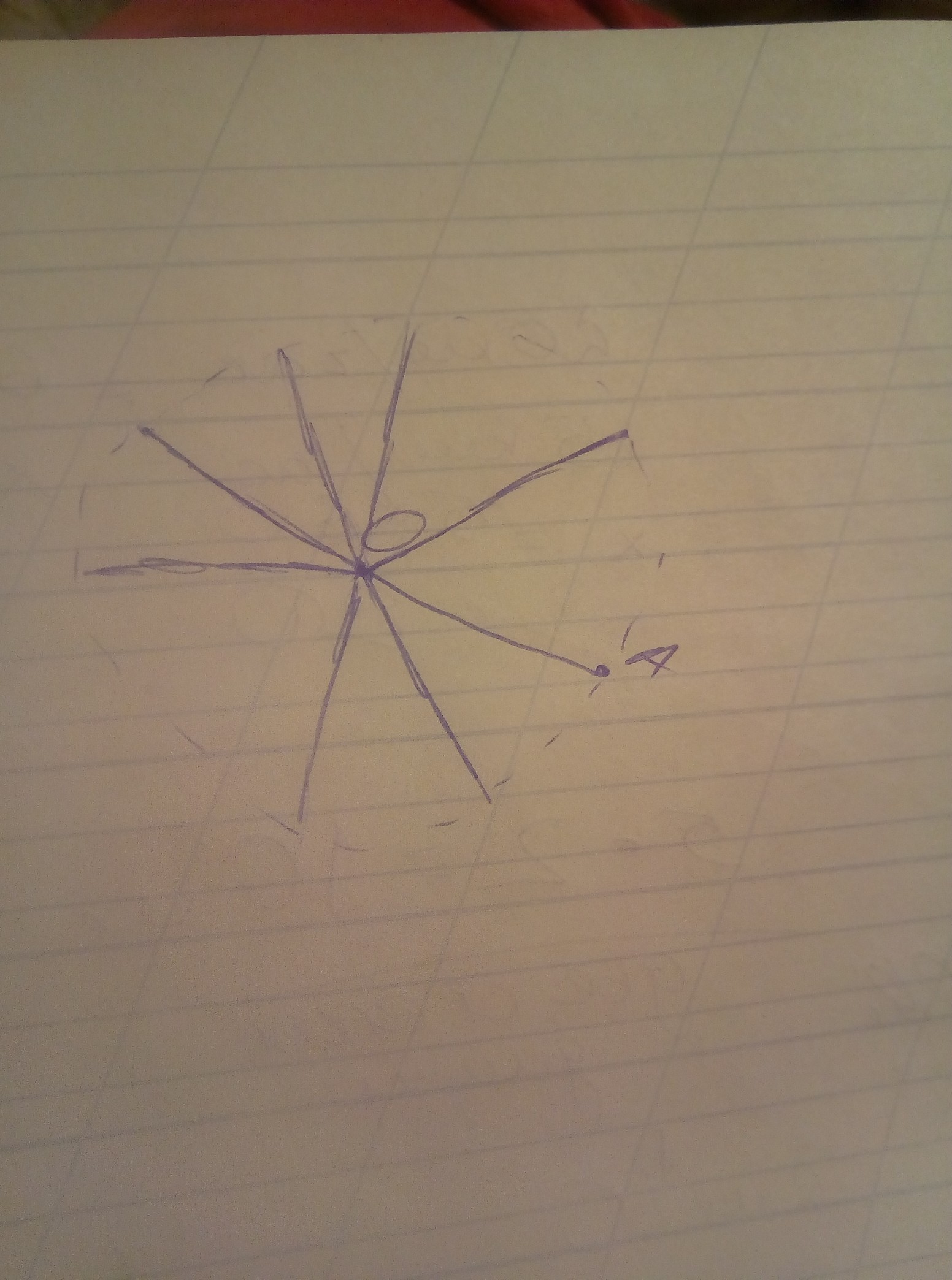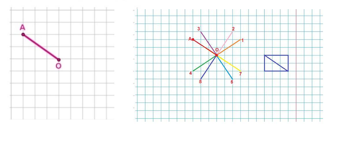Нарисуй еще 7 отрезков от точки O, равных с отрезком OA, со второй конечной точкой также в узлах клетчатой сетки.