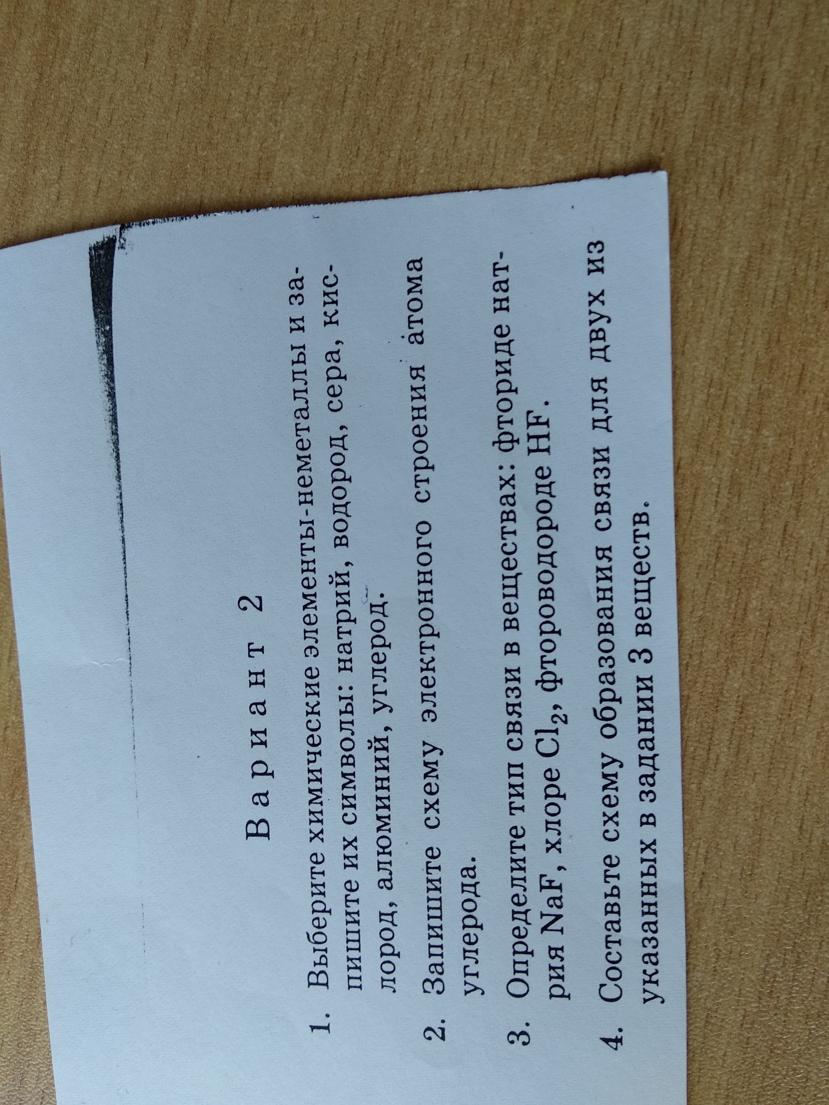 3. NaF - ионная, Cl₂ - ковалентная неполярная, HF - ковалентная полярная