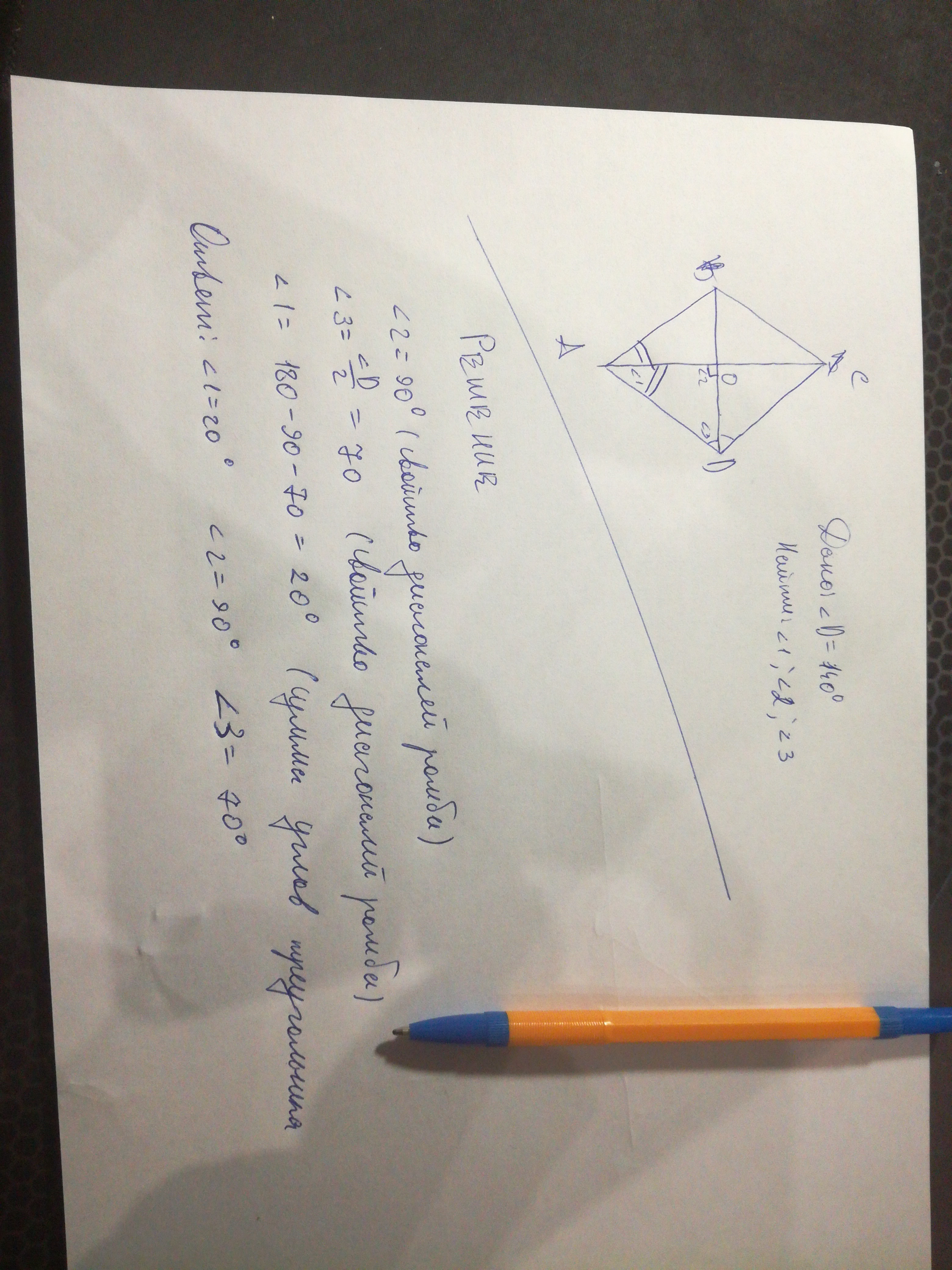 В ромбе ABCD угол D равен 140 градусов Определите углы треугольника aod о точка пересечения диагоналей