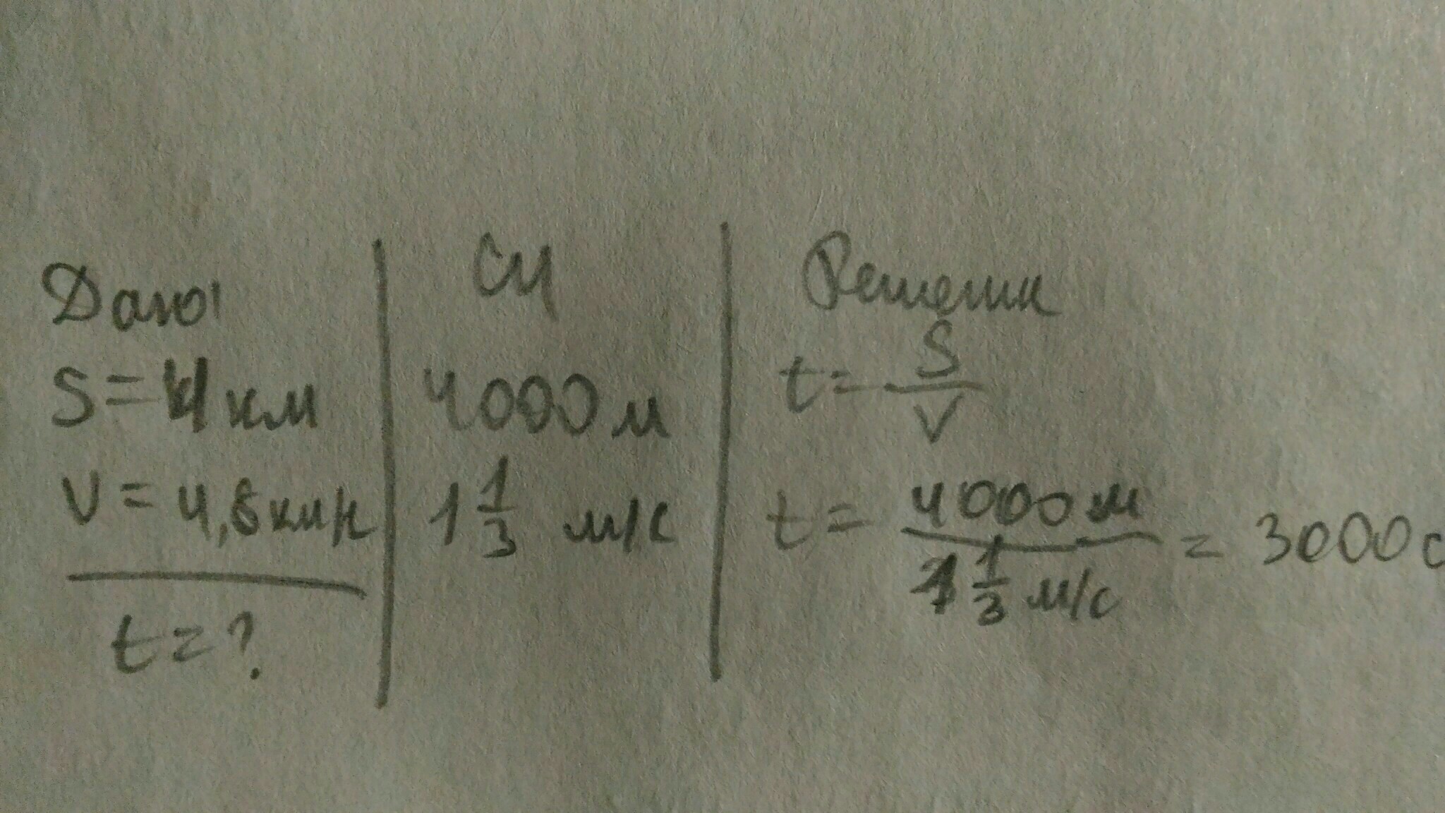 Человек прошёл 4км со скоростью 4,8 км/ч. Сколько времени он шёл?