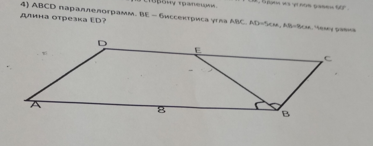 DC= DE+ EC. Опять-таки, так как ABCD - параллелограмм, то DC= AB= 8 см.