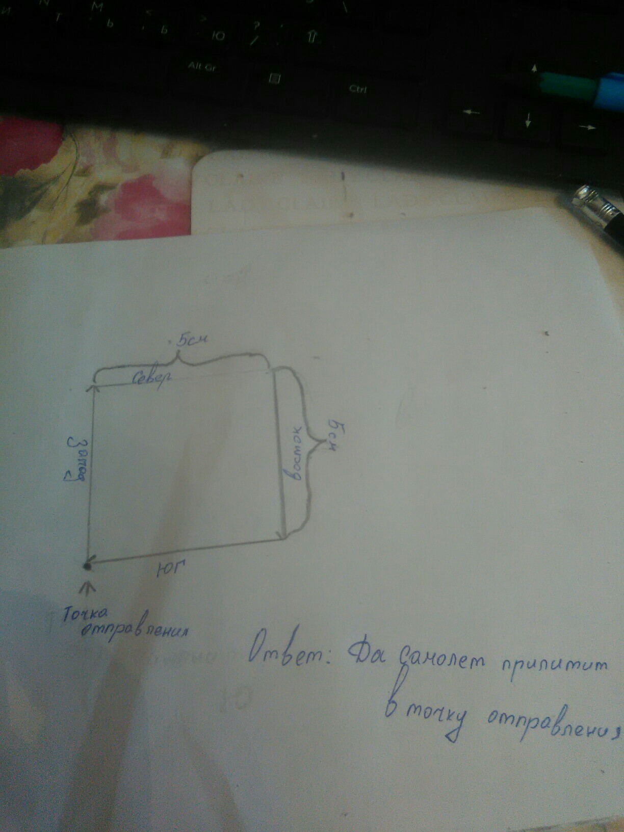 Вы летите на самолёте 500 км на север, 500 км на восток, 500 км на юг, 500 км на запад. Прилетите вы в точку отправление или нет? Начертите маршрут. При масштабе в 1 см — 100 км.