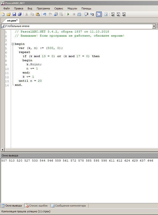 if (k mod 13 = 0) or (k mod 17 = 0) then