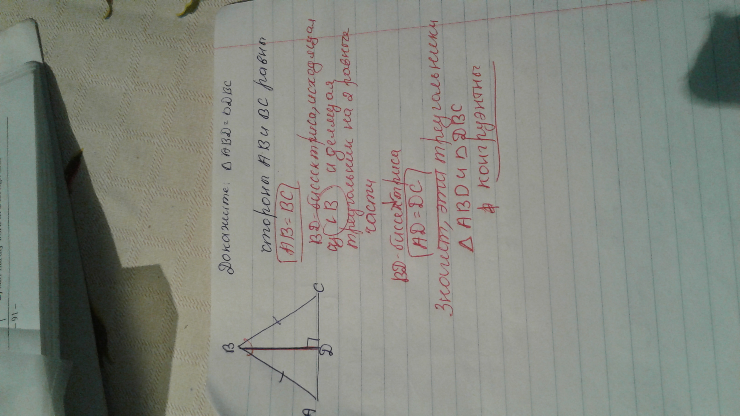 Доказательство равенства треугольников.