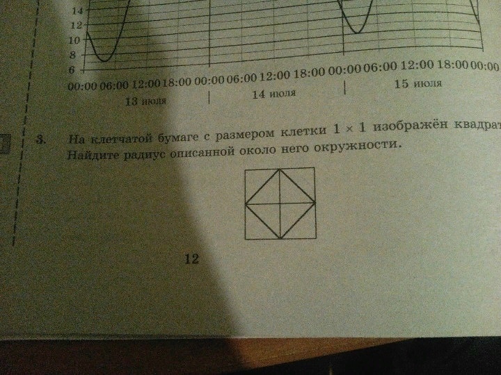 На клетчатой бумаге с размером клетки 1 x 1 изображен квадрат. Найдите радиус описанной около него окружности. (ТОЛЬКО ПОПРОБУЙТЕ НАПИСАТЬ МНЕ В ОТВЕТЕ "6")