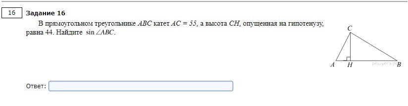 cos ∠CAH =CH/CA= 44/55=4/5=0,8
