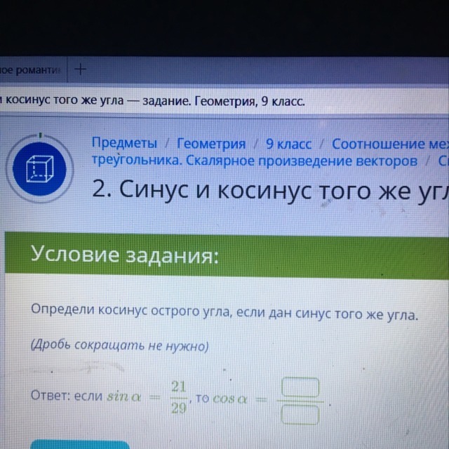 В условии дан острый угол, значит, подходит только cosa = 20/29