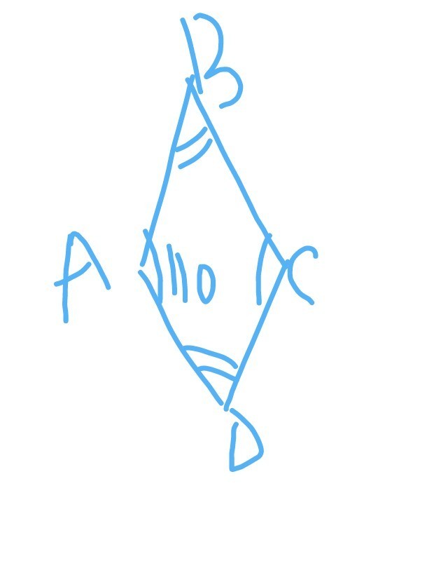 Так как противоположные углы ромба равны, то угол BAD=углу BCD =110°
