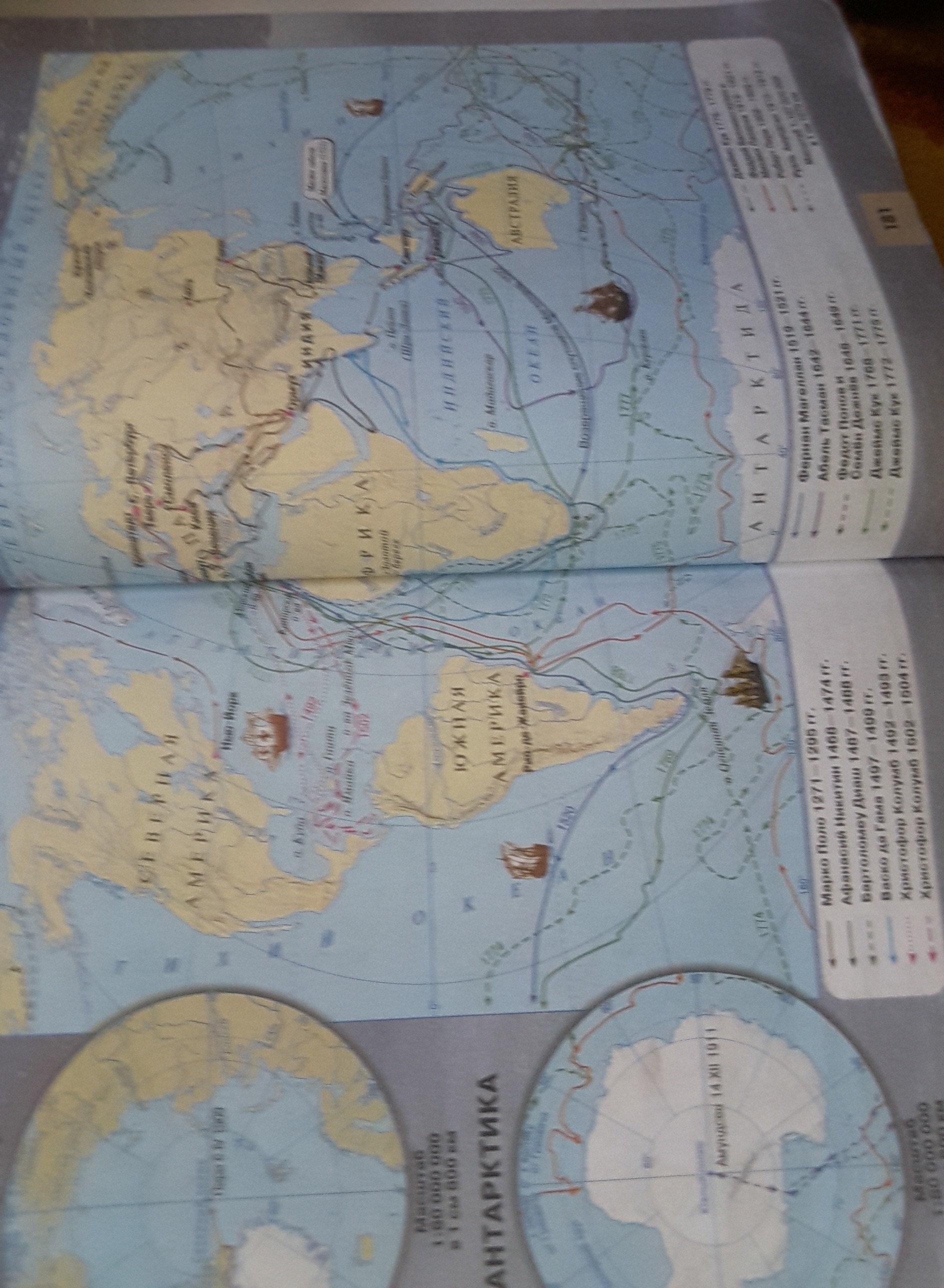 нанести на карту полушарий путешествия:Колумба,Никитина,Баско-Да-Гамо,Магеллан.