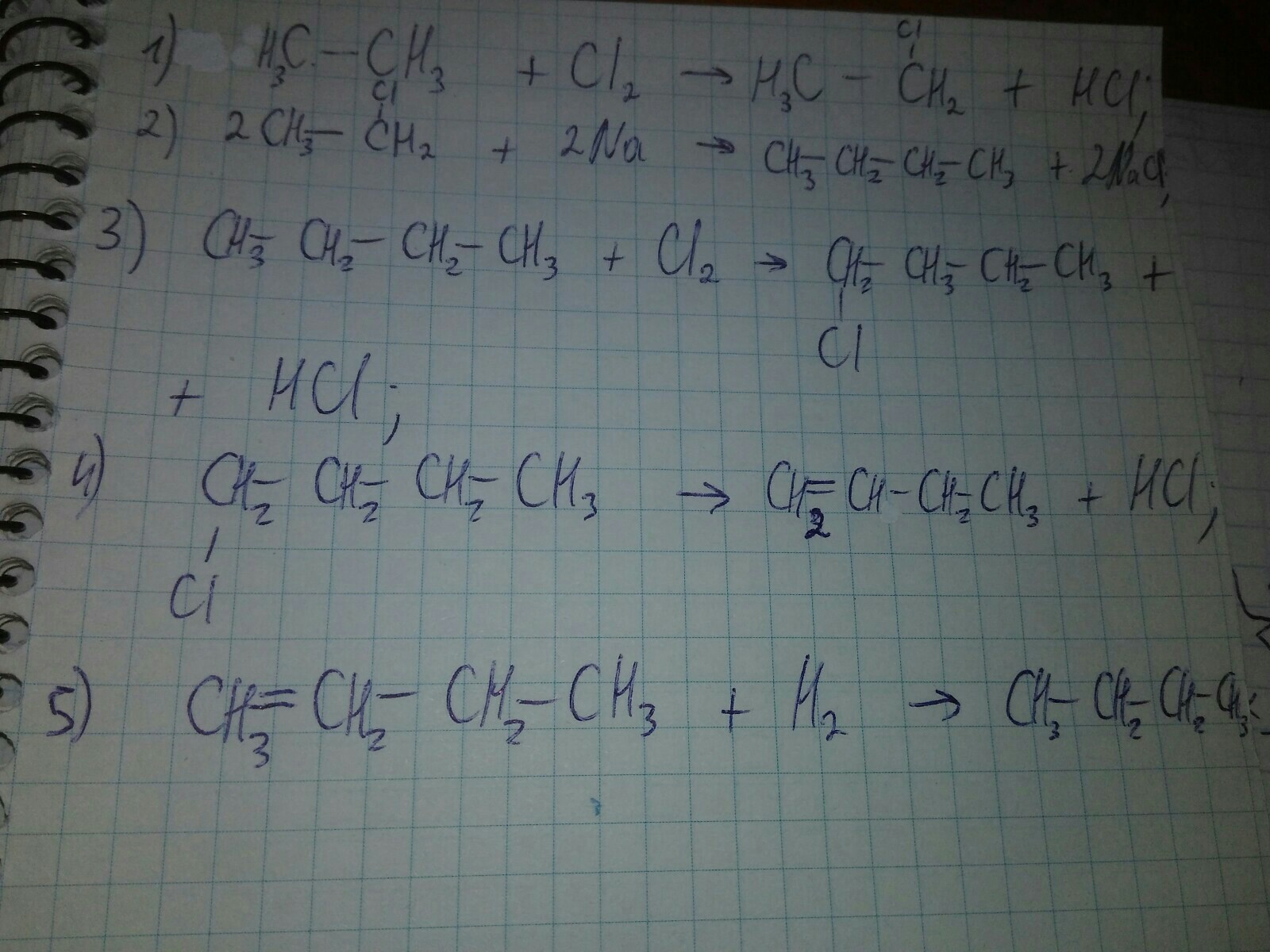 C2H6 -> C2H5Cl -> C4H10 -> C4H9Cl -> C4H8 -> C4H10