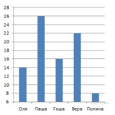 Ответ: от 14 и до 24 минут тратят время домой и до школы трое ребят. Это Оля - 14 минут, Гоша - 16 минут и Вера - 22 минуты.