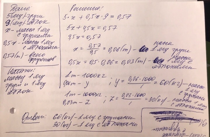 на ярмарку фермер привез 5 ящиков с грушами и 9 ящиков с яблоками. масса ящика с яблоками равна 0,5 мыссы ящика с грушами. найдите массу ящика с грушами и ящика с яблоками, если всего превезино 0,57 тон с фруктами.