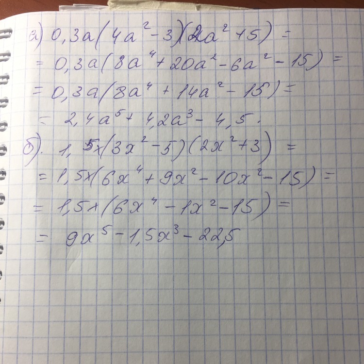 а) 0,3а(4а^2-3)(2а^2+5)