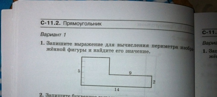 Запишите выражение для вычесления периметра изображённой фигуры и найдите его значение.
