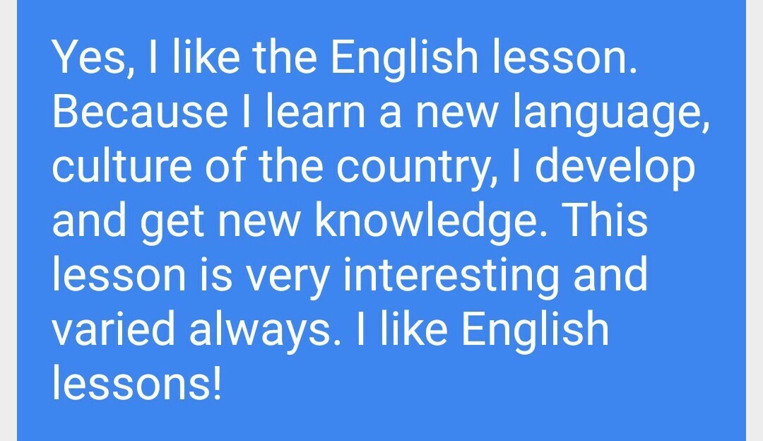 I like English lessons because in the lesson we are told about the structure and proper spelling of a particular word or sentence. Learn to speak the words correctly.