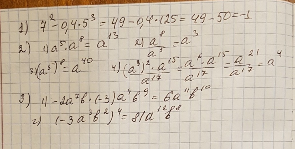 1. Найдите значение выражения: 7^2-0,4*5^3