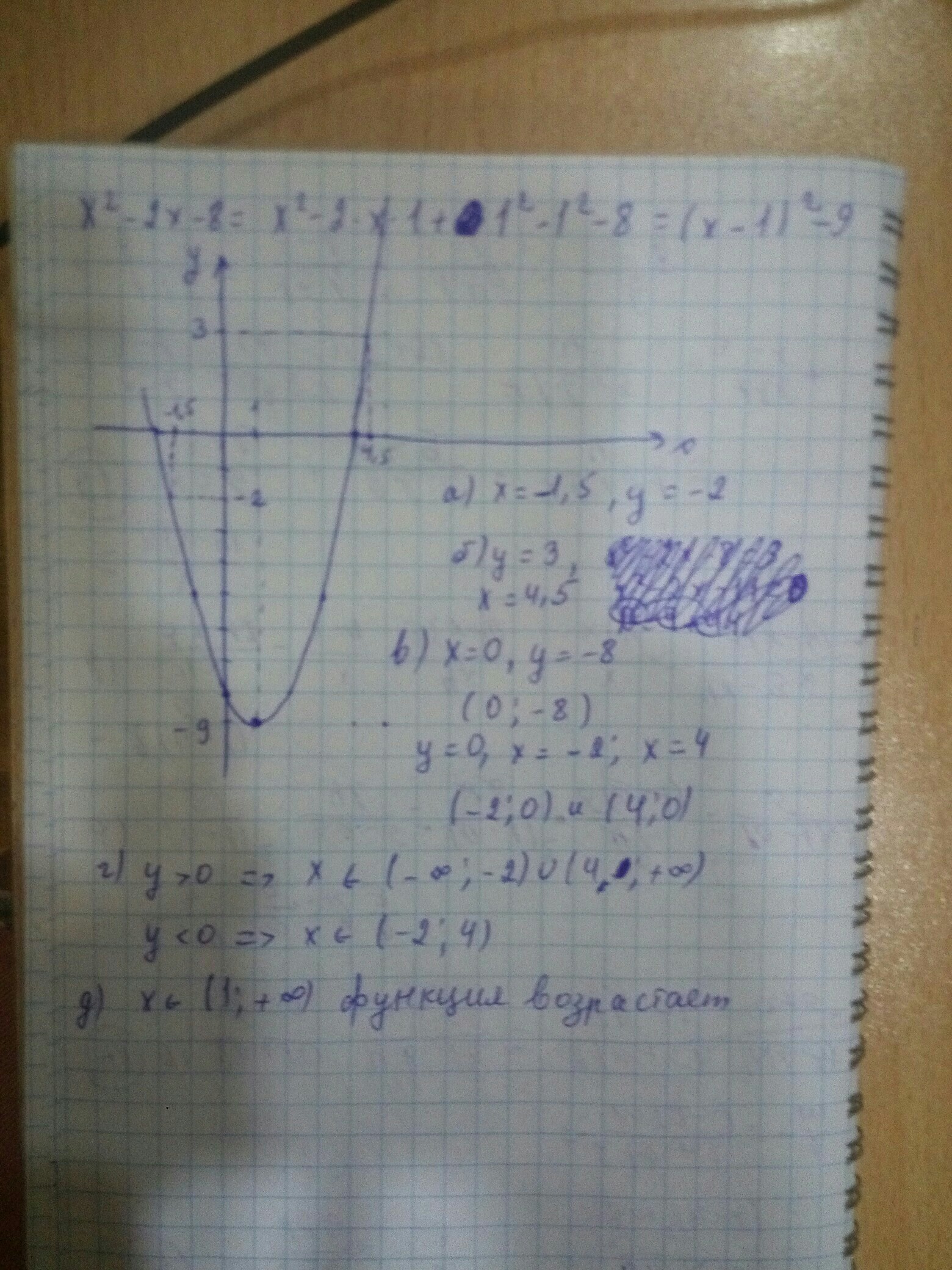 Постройте график функции y=x^2-2x-8