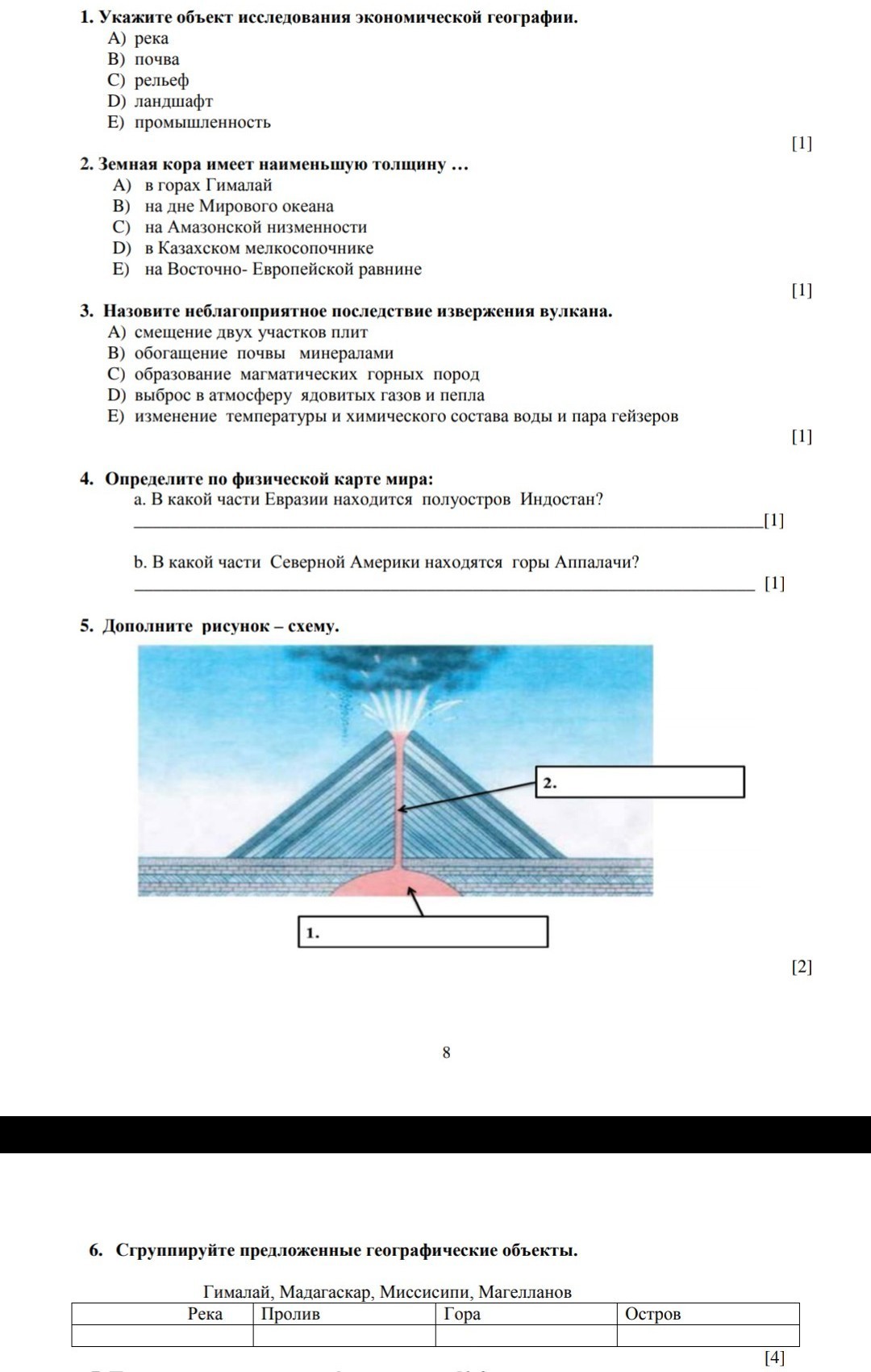 река- Миссисипи, пролив- Магилланов,гора- Гималаи, остров - Мадагаскар