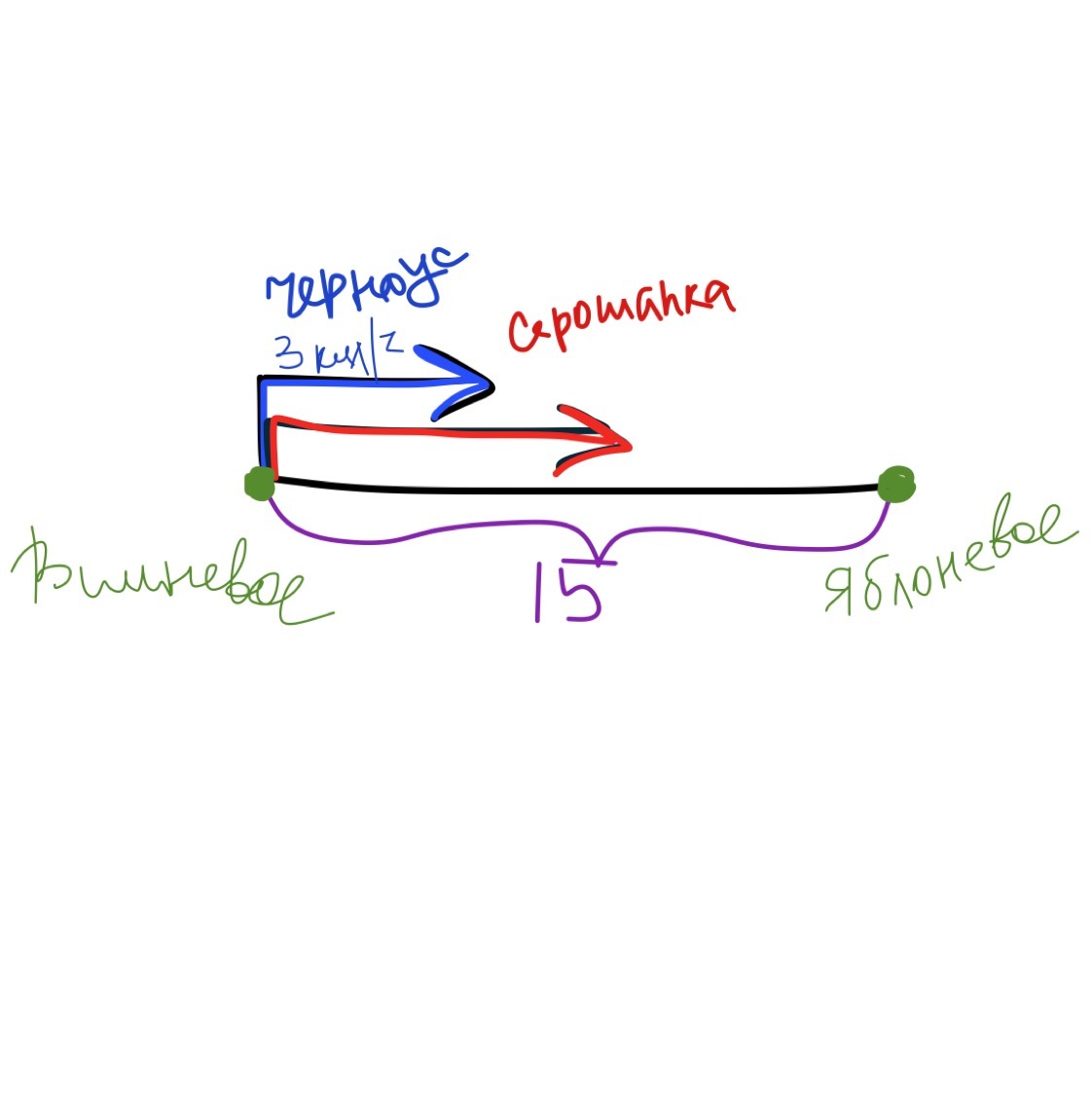 Расстояние между селами Вишневое и яблоневое равно 15 км. Из этих сел одновременно в одном направлении отправились казаки Черноус и Серошапка. Черноус скакал на коне со скоростью 9 км/ч и через 3 часа после начала движения догнал Серошапку, который шел пешком. С какой скоростью шел Серошапка?