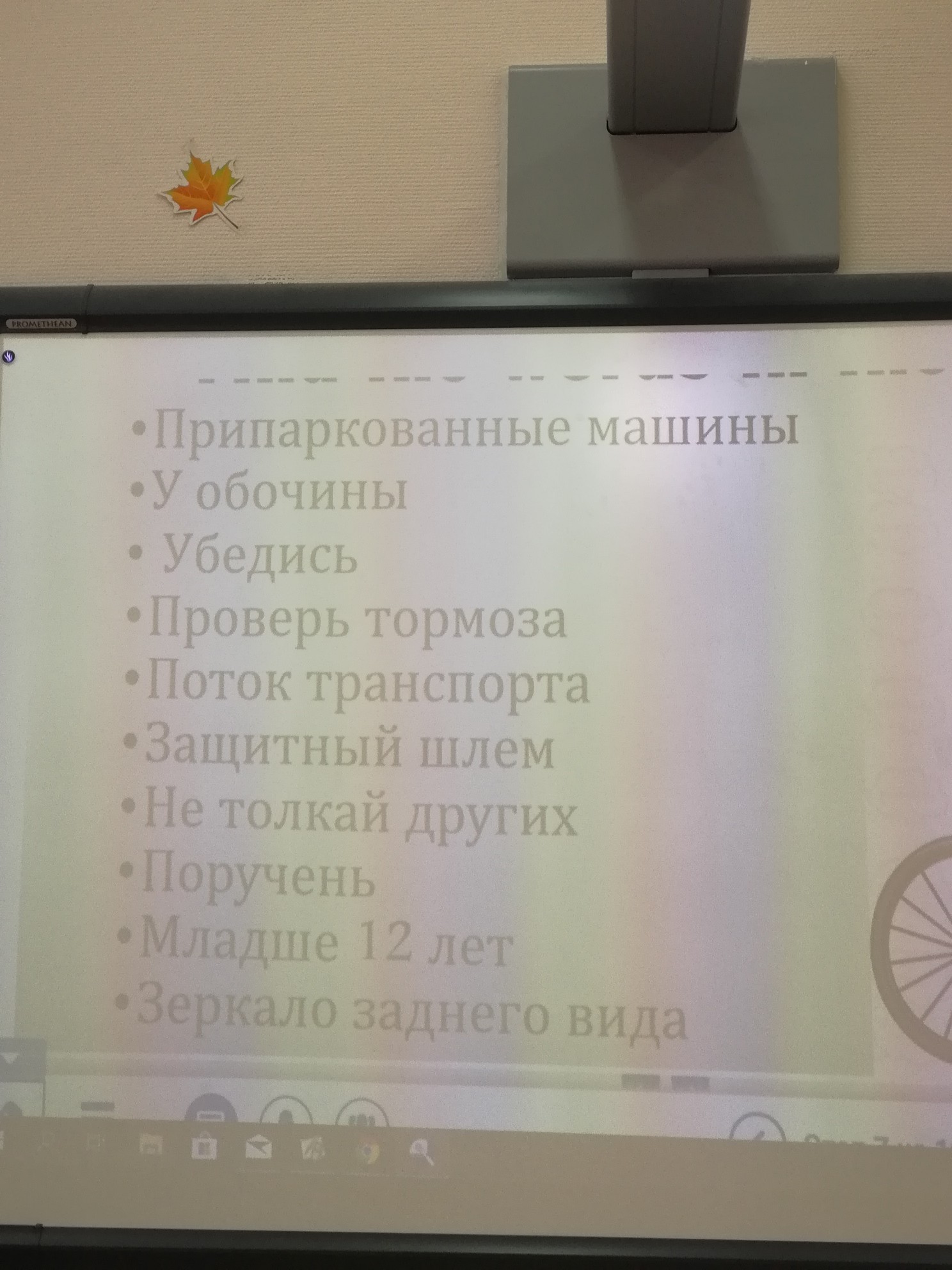 Parked cars ● At the side of the road ● Make sure ● check the brakes ● Traffic flow ● Protective helmet ● Do not push others ● Handhold ● Under 12 years old ● Rear view mirror