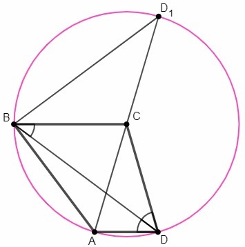 ∠AD1B=∠ADB (вписанные углы, опирающиеся на одну дугу), ∠AD1B=∠CDB