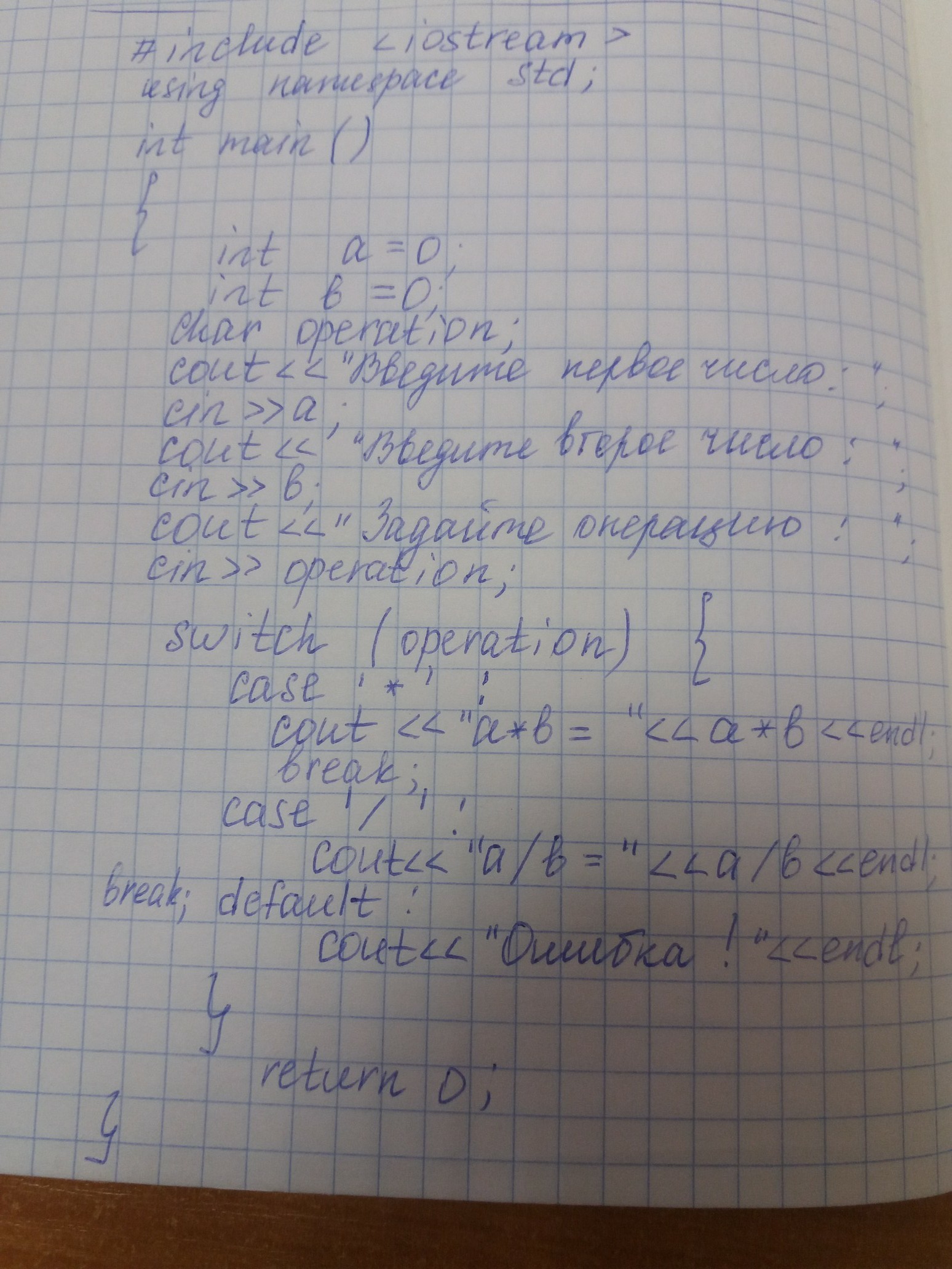Составить программу для вычисления над 2 числами, введеными с клавиатуры. Если ввели > и значит делим числа, если знак <*>, то перемножаем.Результат выводим на экран. Использовать оператор Case.