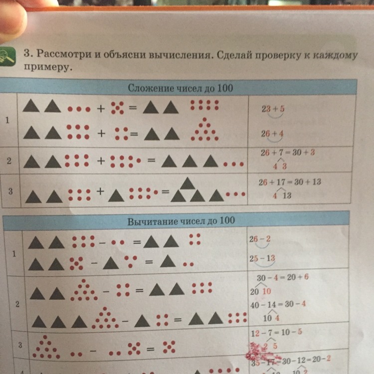 8) (10+10+10+10)- (10+4) =10+10+6 означает:(40-14=26)