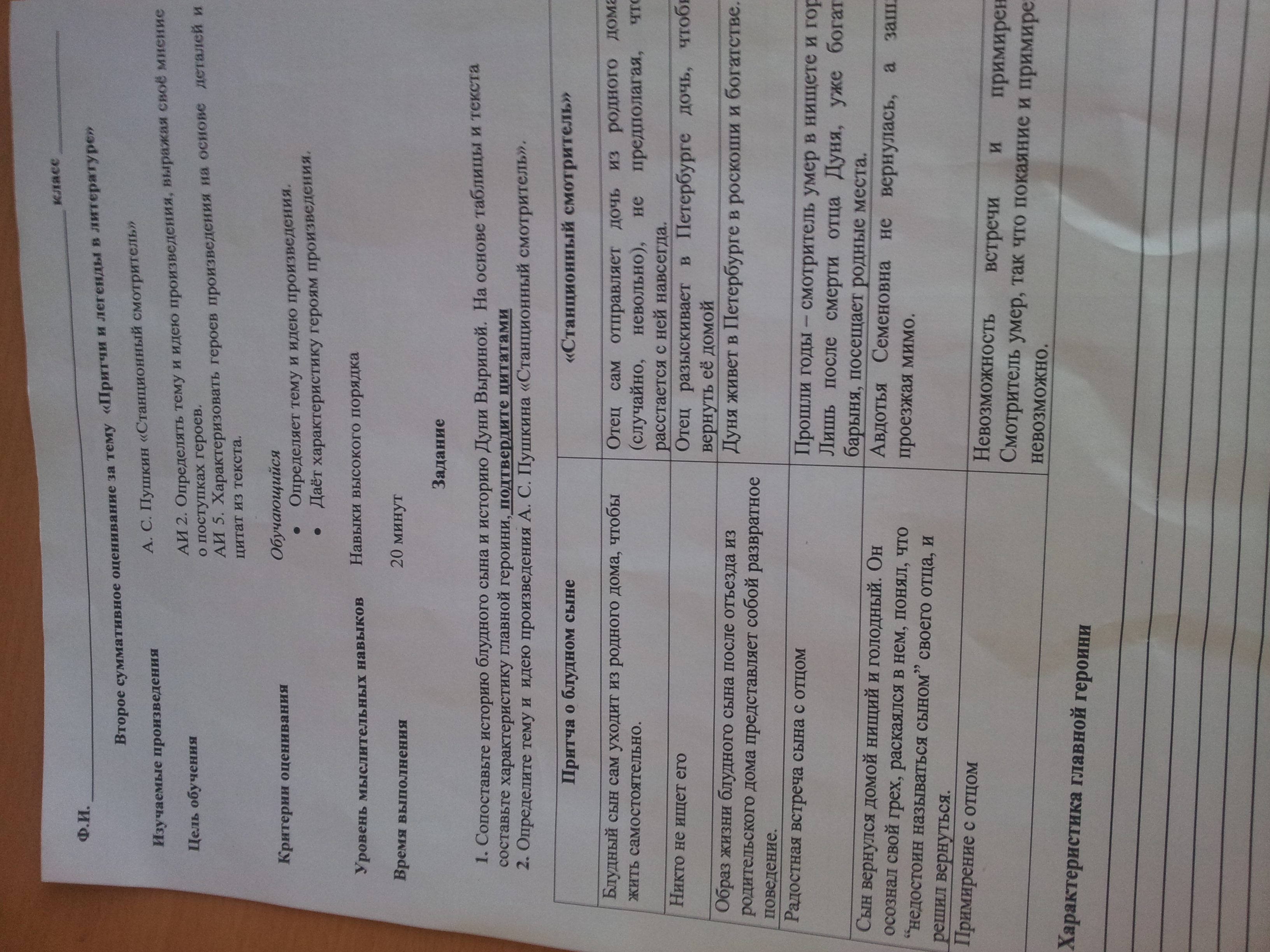 Характер Дуни не выражен очень ярко, он скорее несколько расплывчат. Можно сказать определенно только то, что Дуня была умна, добра, проворна, сообразительна и всем нравилась. Скорее всего, привыкнув к такому обращению, Дуня в душе была уверена, что достойна лучшей участи, нежели роль жены человека ее круга. Она была мечтательна, и видела, какое впечатление ее появление производит на мужчин. Она не могла этого не замечать, и, в некотором роде, не пользоваться. Но она делала это только, для того, чтобы защитить своего отца от плохого настроения путешественников. Но можно также сказать, что Дуня очень любила своего отца, несмотря на то, что сбежала от него и не навещала в течение многих лет. Приехав через несколько лет на его могилу, она горько плакала, это говорит о ее горячем сердце и глубокой привязанности к отцу, которого она бросила из-за любви к мужчине.