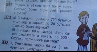 (3 класс) а) В магазин принесли 720 бутылок лимонада в ящиках по 20 бутылок. Сколько было ящиков?
