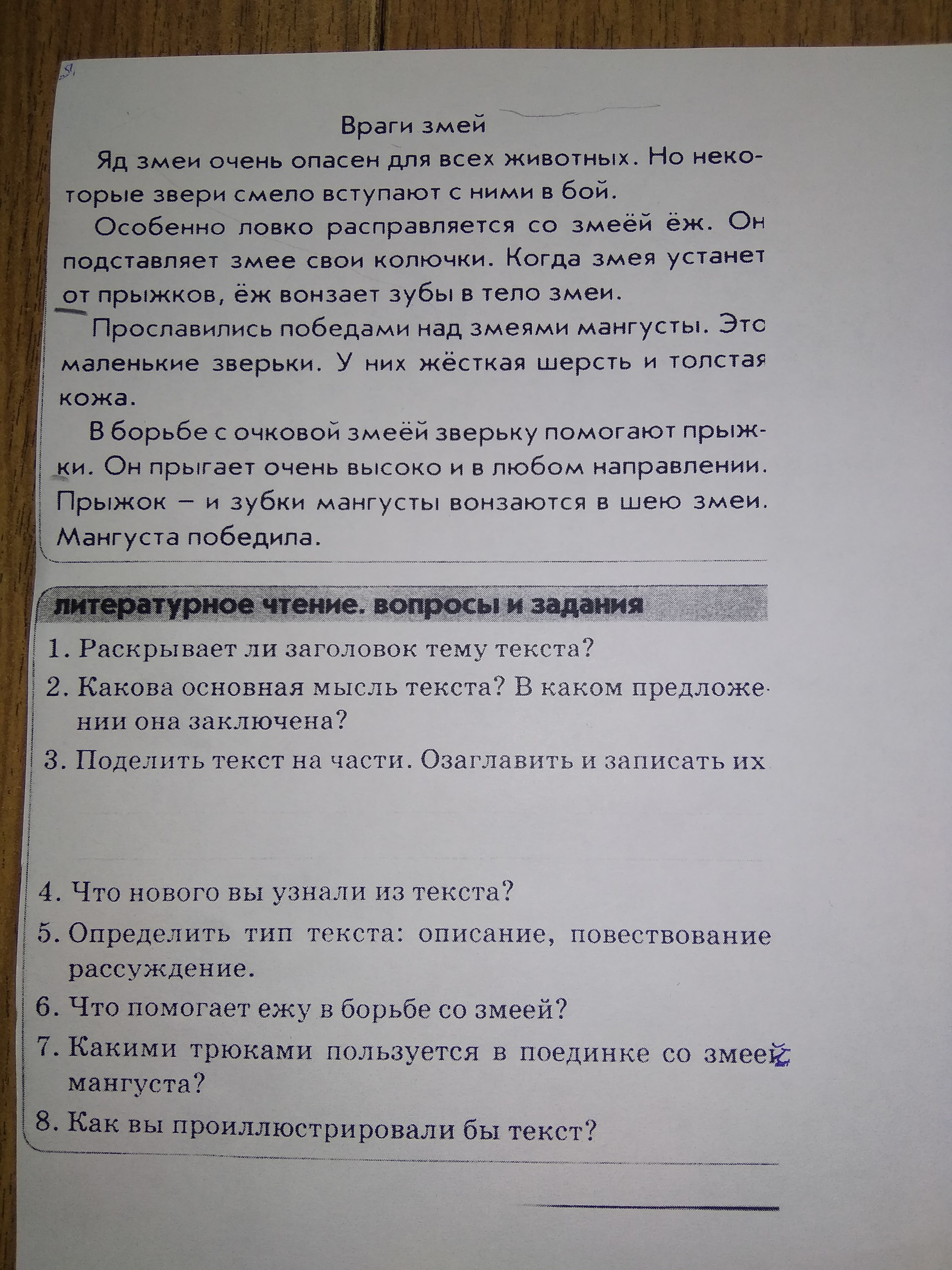 8. Нарисовал(а) бы 2 картинки, одна с борьбой ежа, а другая с борьбой мангуста.