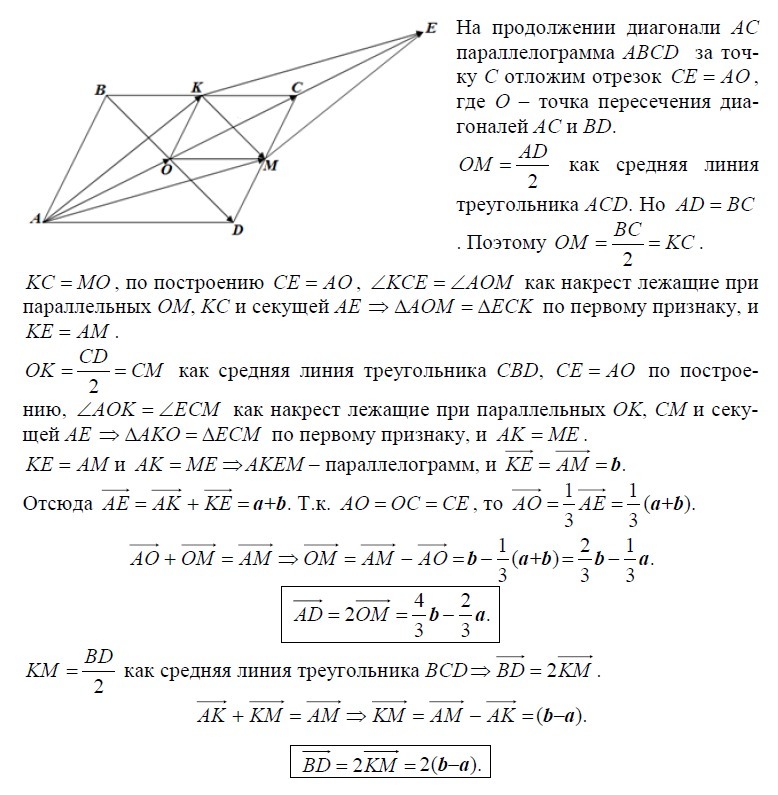 В параллелограмме ABCD : K и M середины BC и CD соответственно,AK=a,AM=b