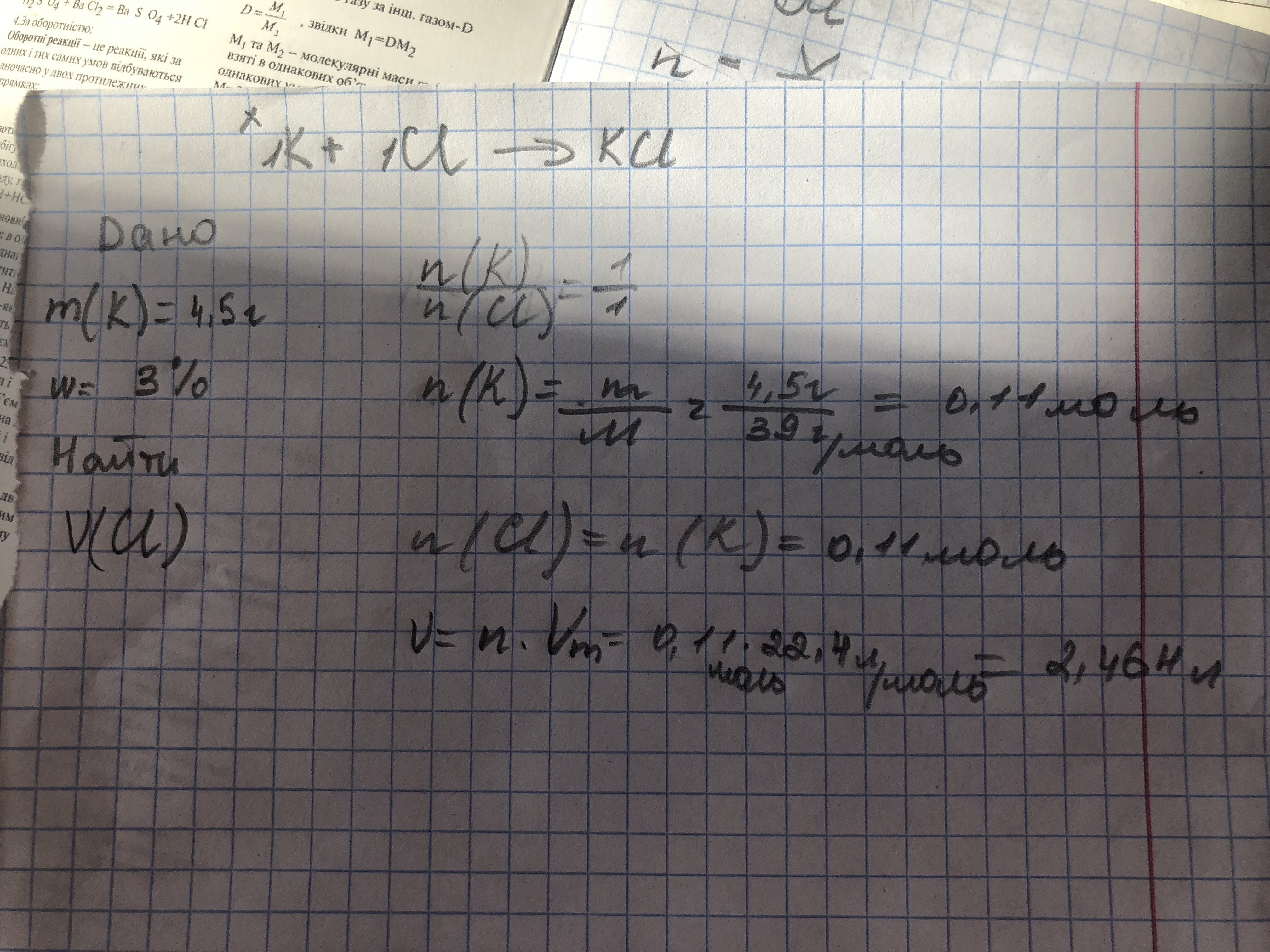 n(Cl)=n(K)=0,11моль