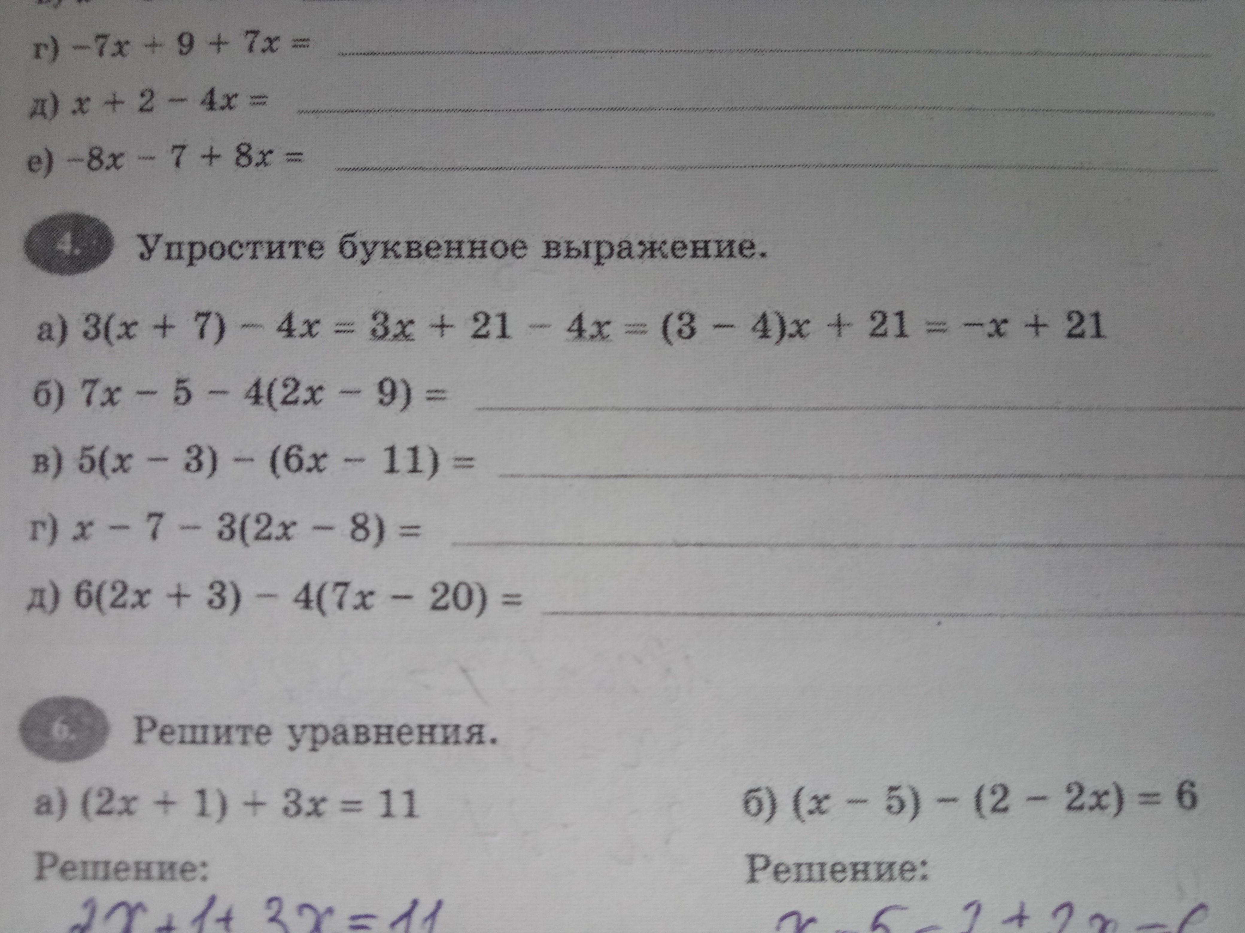 г) = x-7-6x+24 = -5x+17