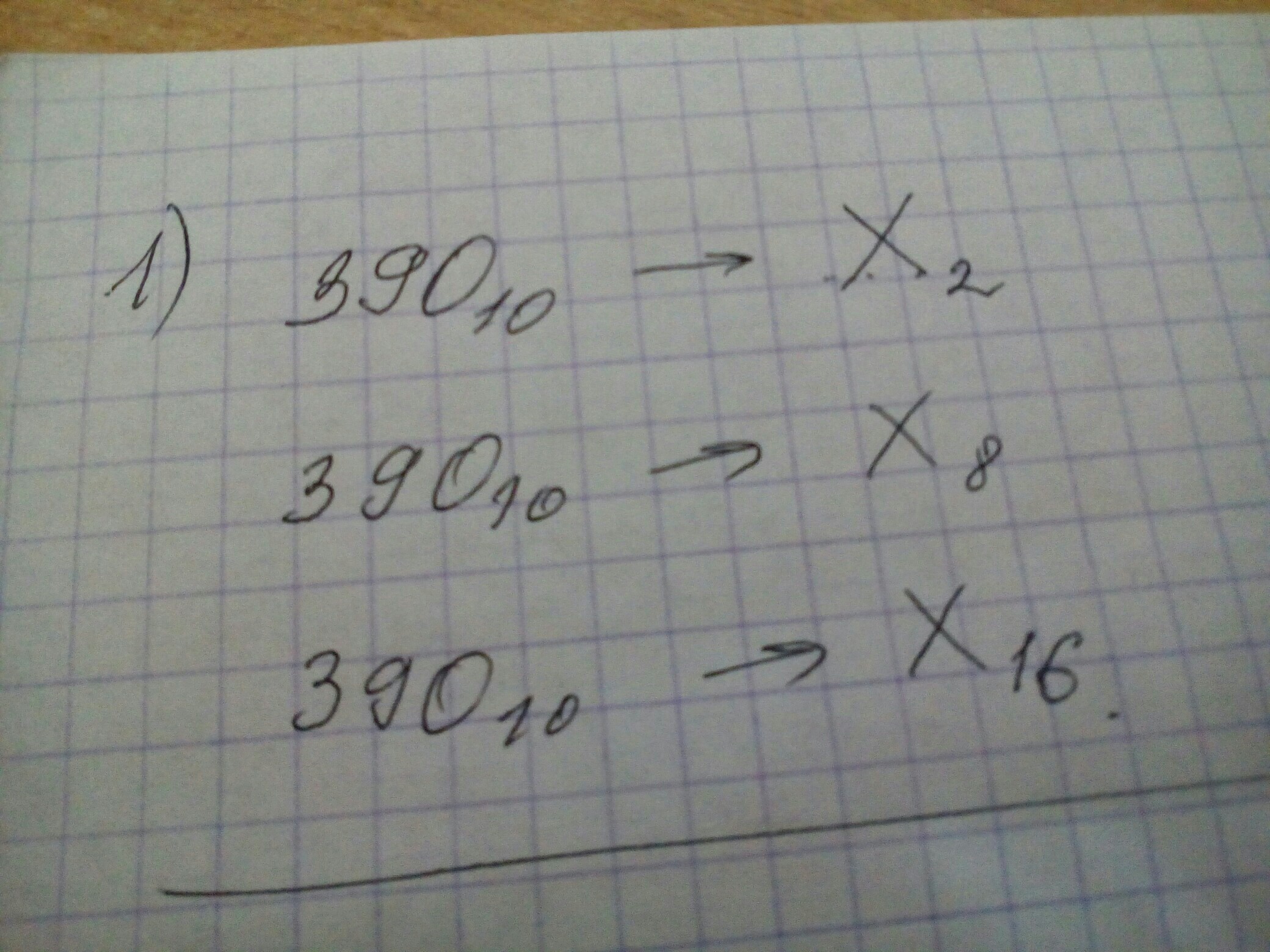 390 делишь на 2 если надо в двоичную систему перевести если на 8 то на 8 делишь 390 и так же с 16