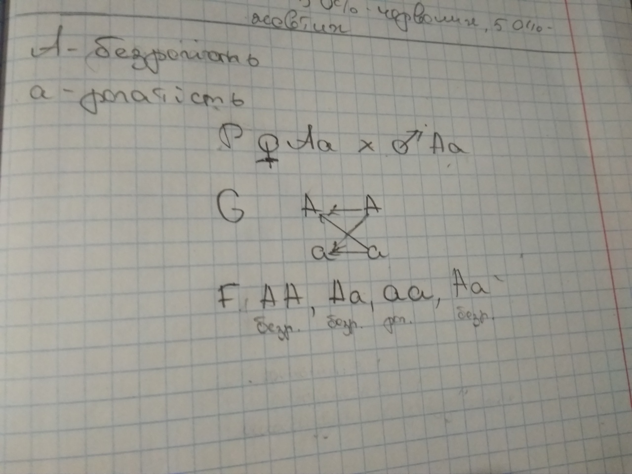 .У великої рогатої худоби ген безрогатості домінує над геном рогатості. Якого результату слід очікувати від схрещування гетерозиготного бугая з гетерозиготною коровою.