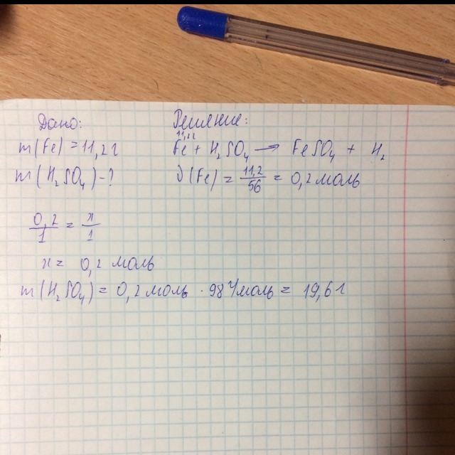 Рассчитайте массу серной кислоты, которая прореагирует с железом массой 11,2 г.