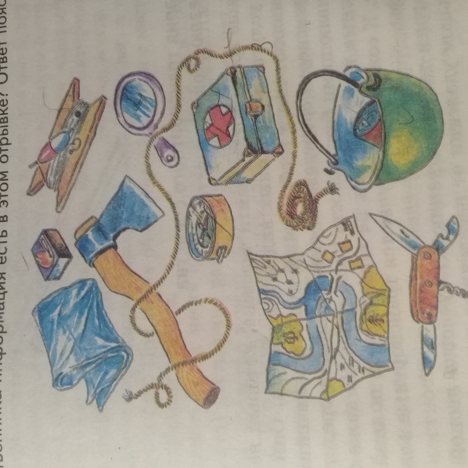 топор-рубать ветки, нитка- лазить вылаз трудных ущельев карта -ориентироваться аптецка-пользоватся в случае необходимости