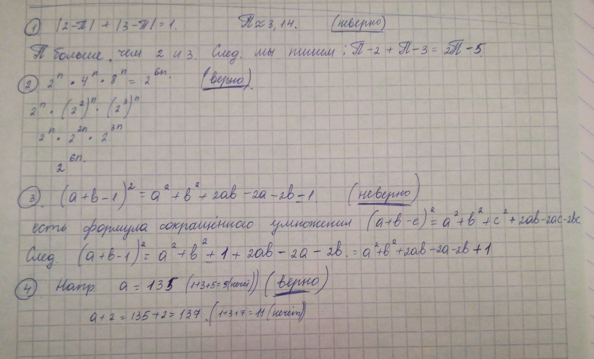 4) Если сумма цифр числа а нечетная , то и сумма цифр числа а+2 тоже нечетная